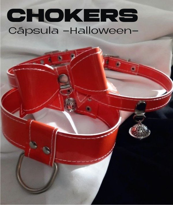 Chokers -Edición Halloween- Variantes de Chokercitos en Sintético Charol Naranja o Negro con herrajes niquelados. Realizados a Pedido según Talle o a Medida (Requiere 1 Medida: VER esquema). Tiempo de Producción durante el mes de Octubre 5 días Hábiles. Resto del año 15 días Hábiles. (NO Incluye el Tiempo de Envío).