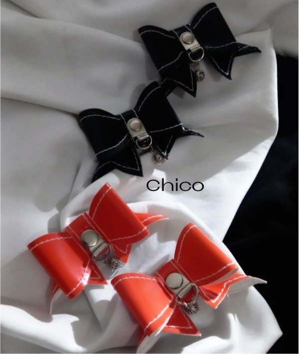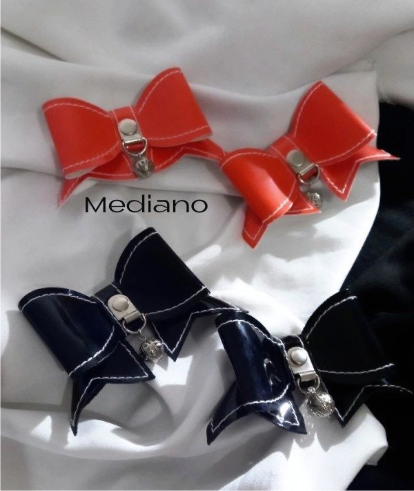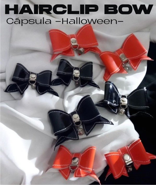 Hair Clip Bow -Edición -Halloween-, Moñitos en Hebillas x par, para complementar tus peinados y outfits. (Tamaños: Chico o Mediano) en Sintético Charol Naranja o Negro con herrajes niquelados.
