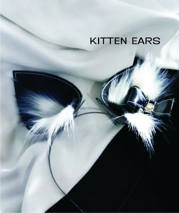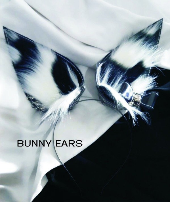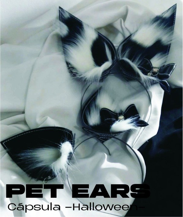 Pet Ears ByW -Edición Halloween-, Orejitas Kitten o Bunny con Dijes y Moñitos fijos en Vincha o Hebillas en Sintético Charol Negro con Piel Bicolor Negro/Blanco con herrajes niquelados.