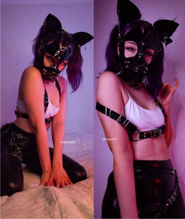 Kitten Mask I, en Sintético Charol, Sint. Espejo o Sint. Tornasol, con Mandíbula Inferior del Hocico Desmontable, 2 Pares de Orejitas Intercambiales, con Piel Sintética, Dijes y Moñitos fijos. Con Herrajes Niquelados. Realizado a Pedido, Talle Único. Tiempo de Producción 20 días Hábiles. (NO Incluye el Tiempo de Envío).