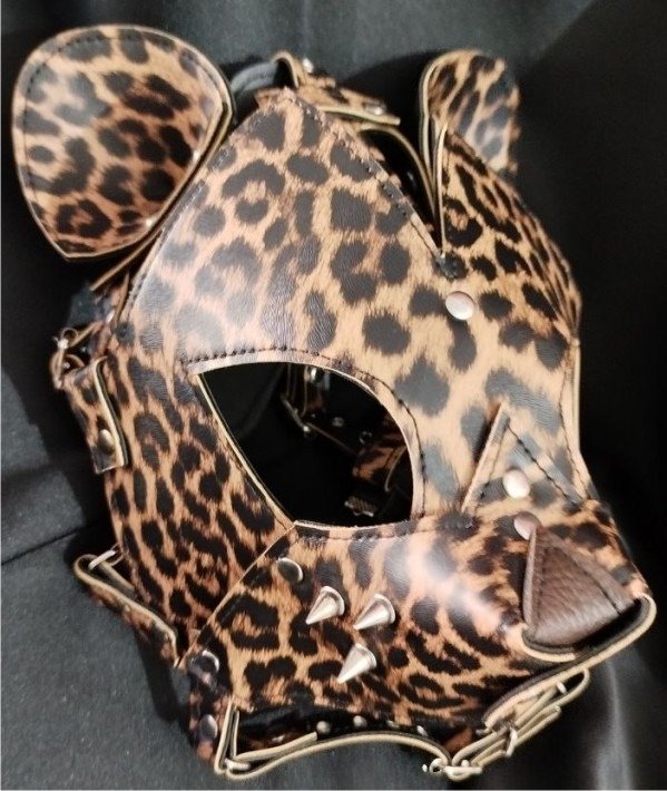 Leopard Mask, en Sintético Pu con patron animal print Leopardo y Herrajes Niquelados. Realizado a Pedido, Talle Único.
